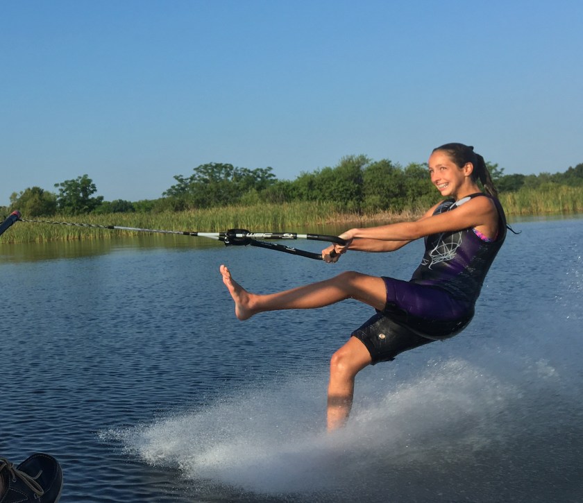 Grace says her barefoot dream is to “Learn a surface turn and barefoot as long as possible and just keep having fun with it.”