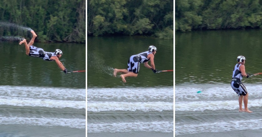 A cool morning gave way to an incredible first day of competition of the 2019 U.S. Barefoot Nationals at the Blue Moo in Alma Center, Wisconsin. And the first day offered plenty of thrills, spills and incredible performances. You can watch the Nationals Livestream HERE.