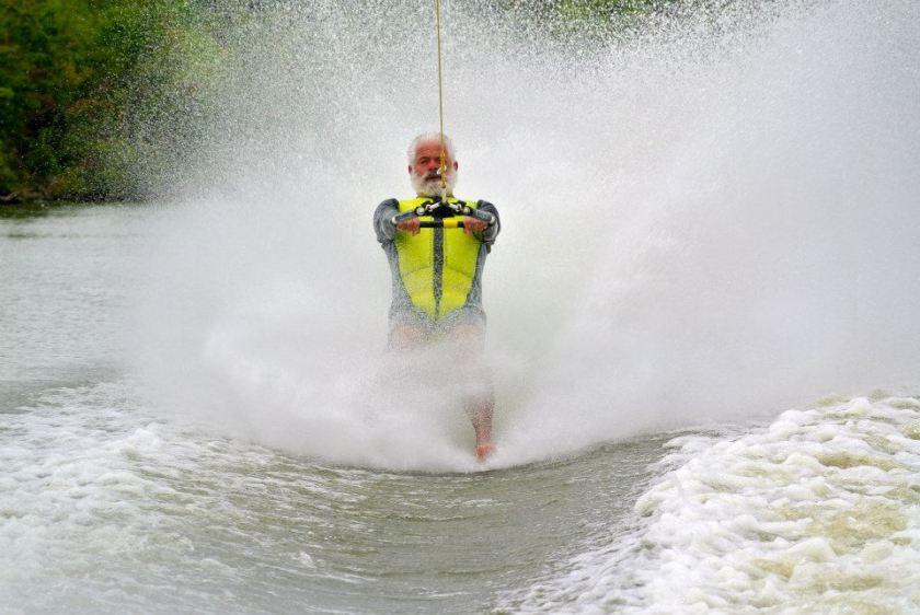 Sparky set a personal goal to barefoot every month and was successful for 17 years, (204 months) until a shoulder injury in the 2018 Lake Norman New Year’s Day Barefoot Tournament interrupted his string.