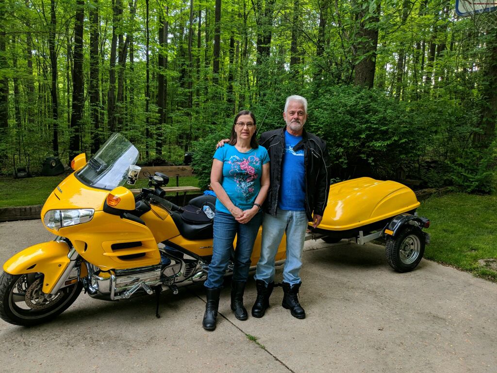 George has been an inspiration for many barefoot water skiers and water skiers in general. Sparky actually bought George’s 2003 Sanger on George’s 90th birthday in 2005. George’s inspiration enlightened him to begin his 50 state quest. Honoring George along with the safety aspect of visibility and to match his Sanger, Sparky also rides a bright yellow motorcycle.
