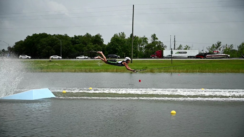 Carter Boerman took advantage of the timing to make a statement on the barefoot ramp. The 15-year-old boosted a 15.9-meter picture-perfect inverted jump to launch into the Open Men’s division. He also scored 5000 in tricks to make his way into Open Pro! Wait, whaaaat? To top it all off he scored a 14 in wake slalom to cut into Open Men’s and create a trifecta of personal bests in this breakthrough tournament! This kid is on fire!