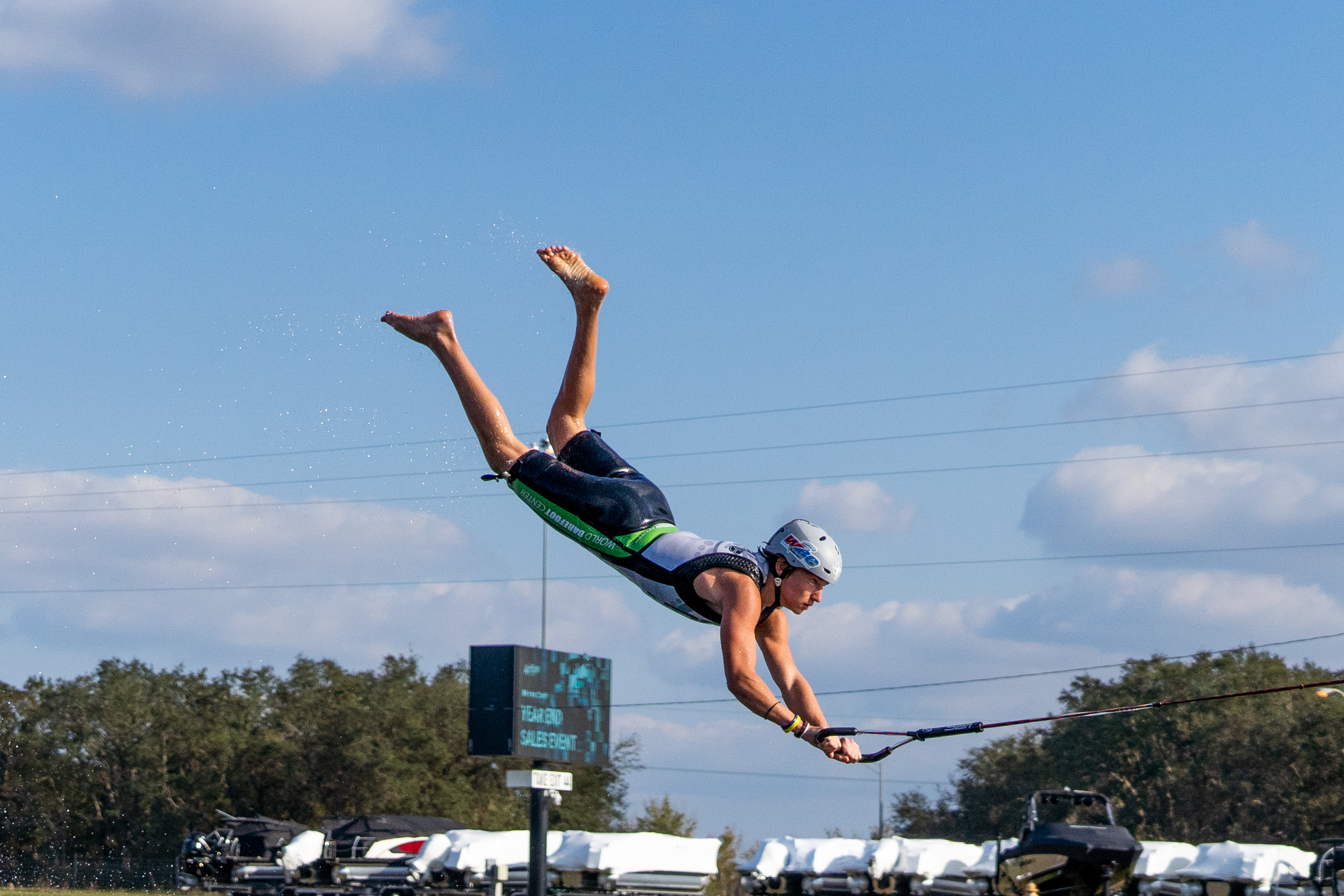 Junior worlds team member Amara Bruns also came to the tournament hoping to land a jump. She spent two weeks at the World Barefoot Center prior to the tournament with the main focus of jumping. She went from only ever jumping on the boom to landing her first two longline attempts in the span of a week’s time. The Mike Salber Memorial jumps were Amara’s first jumps in a tournament. She, unfortunately, failed to land a jump in the tournament but she will also be returning to the January 7th tournament.