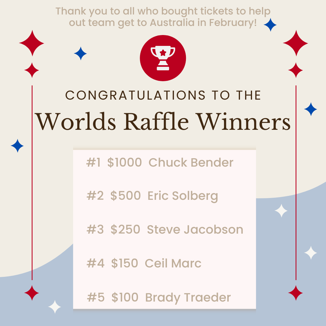 We also held a drawing for the USA Barefoot Team Fundraising Raffle! Below are the winners!