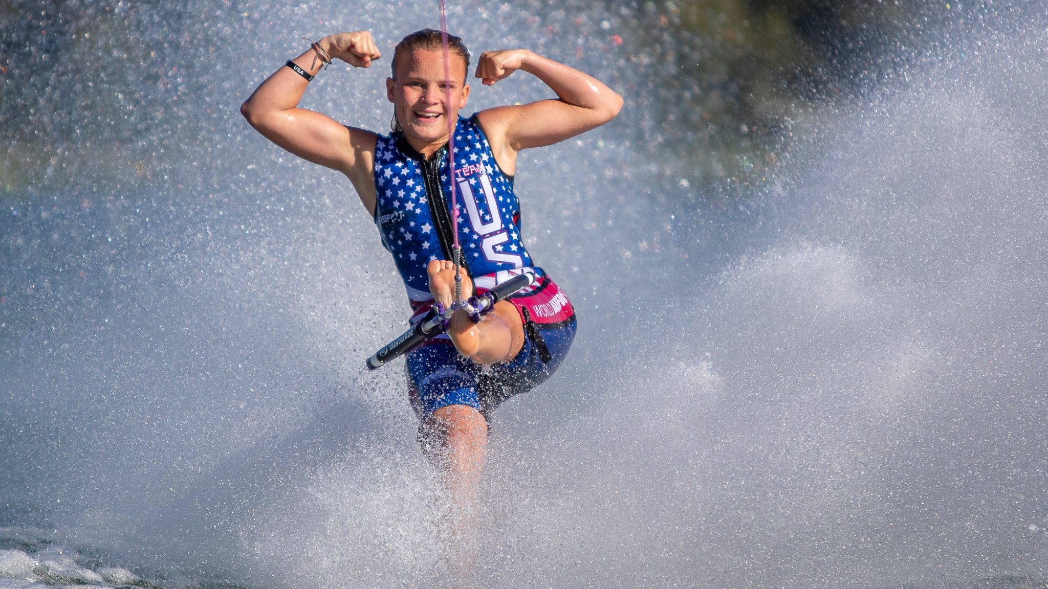 The only woman athlete named to the US Elite Team, Faith didn’t even compete in three-event barefooting two years ago. But in this worlds, in one of her first tournaments ever, she won an Open Team Bronze and an Open Slalom Bronze. In Under 23, she won tricks, jump, and the overall title!