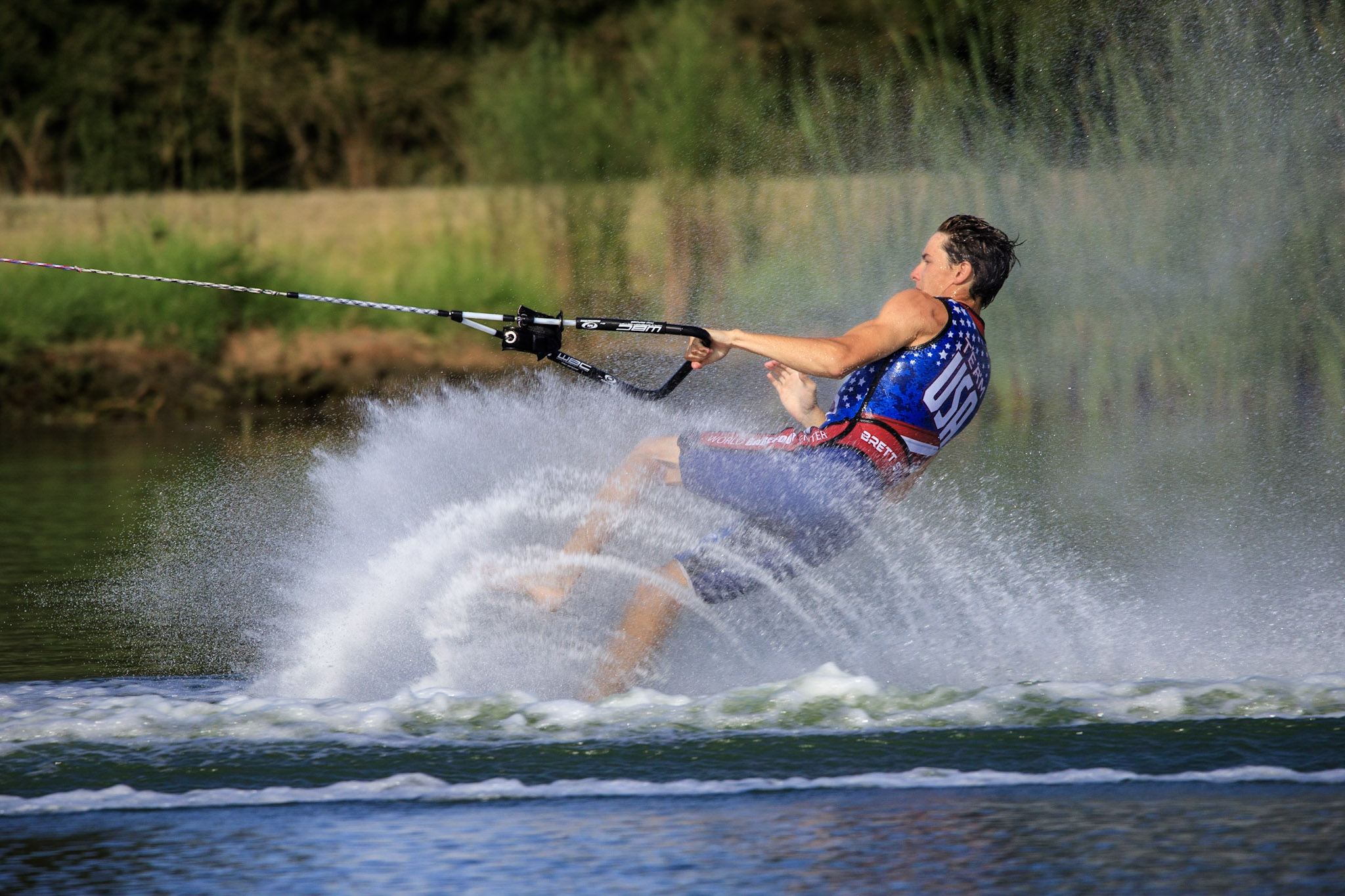 This division is full of “big guns.” And 19-year-old USA Skier Brice Storman put the whole crew of legends on notice. Brice tied for the fifth and final spot in the open mens division slalom finals with Australian Barefoot Legend Pete O’Neill. A runoff was held between the two skiers in marginal water conditions. (The tournament was actually canceled for the rest of the day because of the wind.)