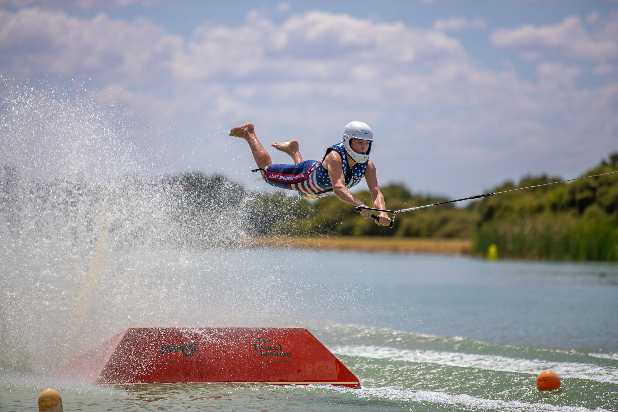 The only woman athlete named to the US Elite Team, Faith didn’t even compete in three-event barefooting two years ago. But in this worlds, in one of her first tournaments ever, she won an Open Team Bronze and an Open Slalom Bronze. In Under 23, she won tricks, jump, and the overall title!