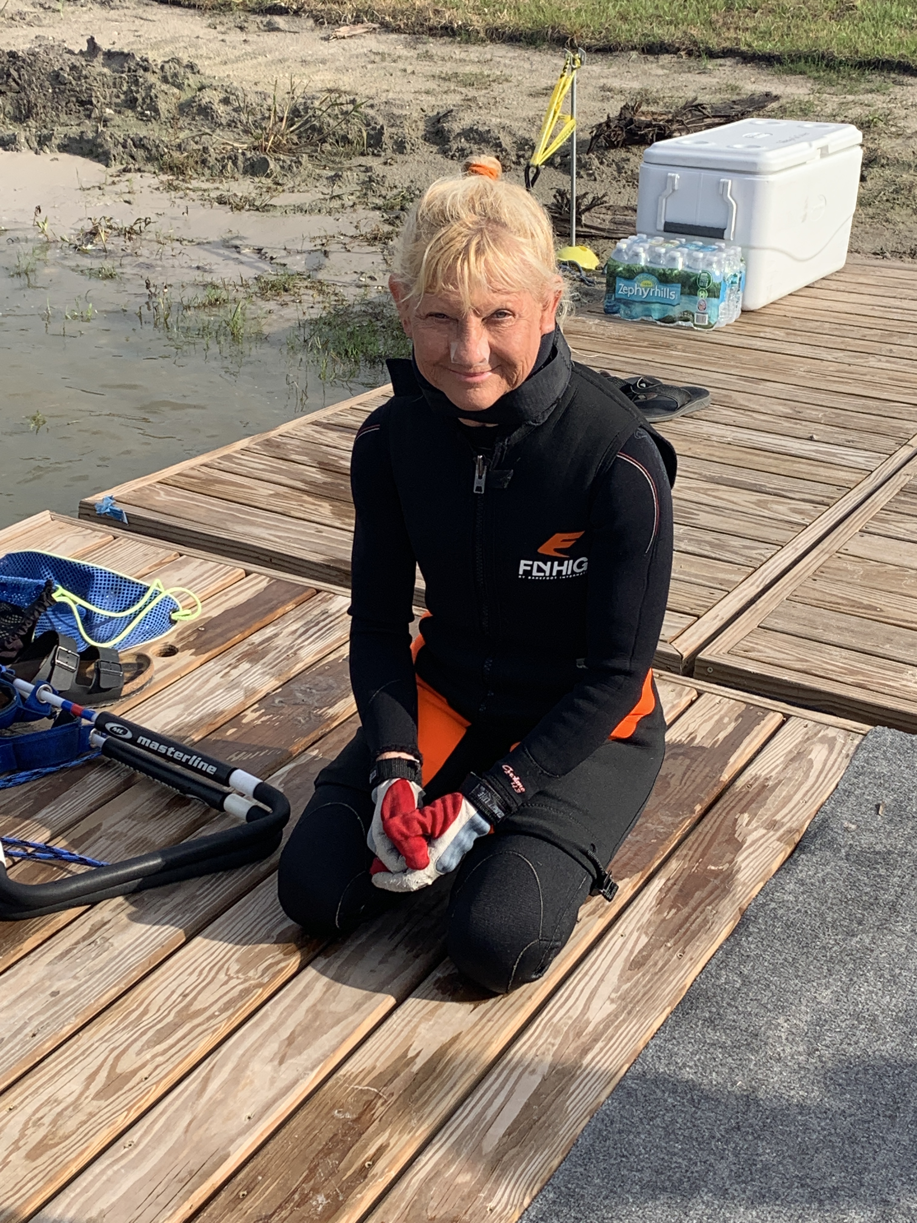 World Barefoot Center’s Executive of Petroleum Distribution, Trey Edwards, introduced his new shoulder protectors (patent pending) to Lake New! Trey scored an amazing 2400 in tricks and 11 in slalom.
