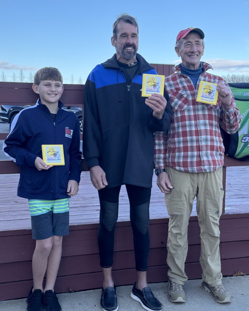 3rd place went to 12-year-old Logan Harrington of Davidson, NC, with 60 points for his start and 78 seconds for a total score of 138. Logan has competed in the New Year’s Day tournament every year since age 5. Last year Logan shocked everyone except his dad by winning the Open Division at 11 years of age. In 2025 he trained extensively, placing second in the Boys B division at the National Barefoot Championships held in August in Auburndale, FL. Logan had hopes of winning the Lake Norman New Year’s Day Open title again, but the competition was stiffer than expected.