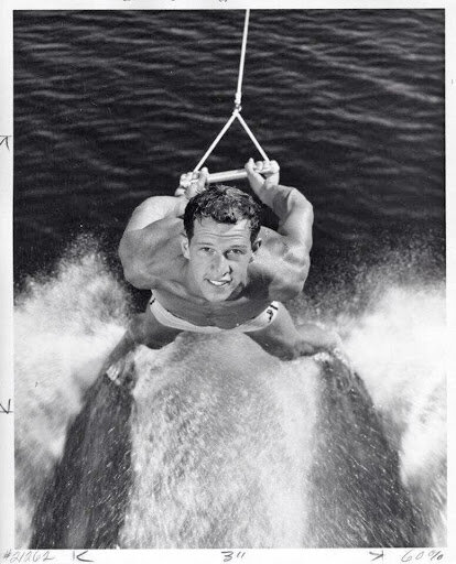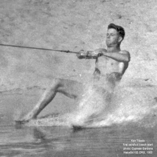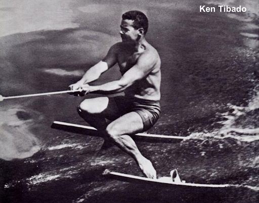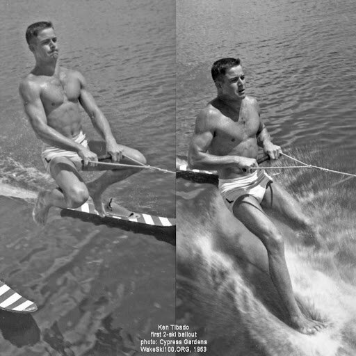 1953 Ken Tibado, barefootin two ski jump out