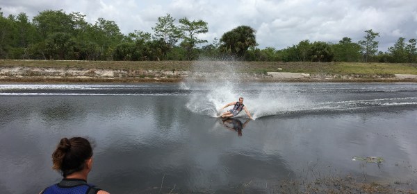 David Small was just one of the barefooters living large on the PGA Canal Saturday. Two dozen barefooters gathered on the shore of Chomper’s old